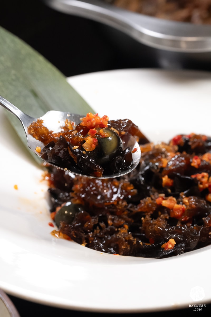 大片海蜇如雲朵般Q彈,裡面還驚喜加入鵪鶉皮蛋。剁椒的酸辣清爽,非常開胃。