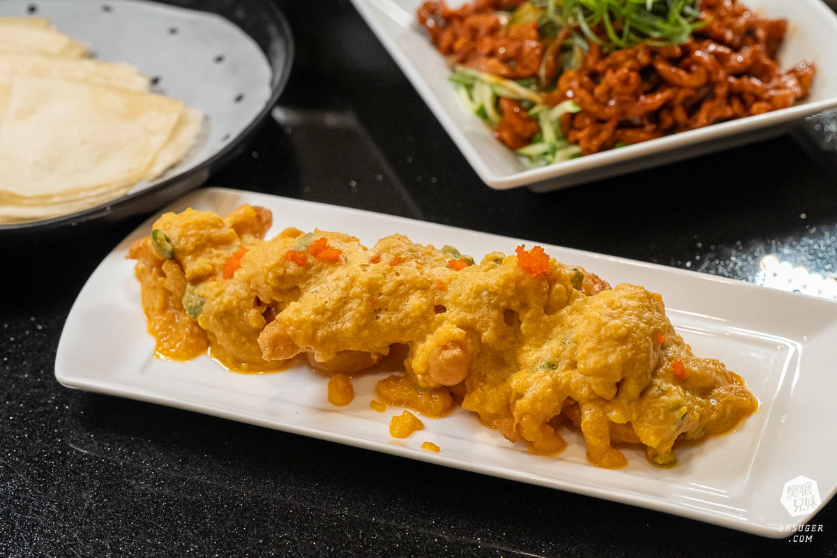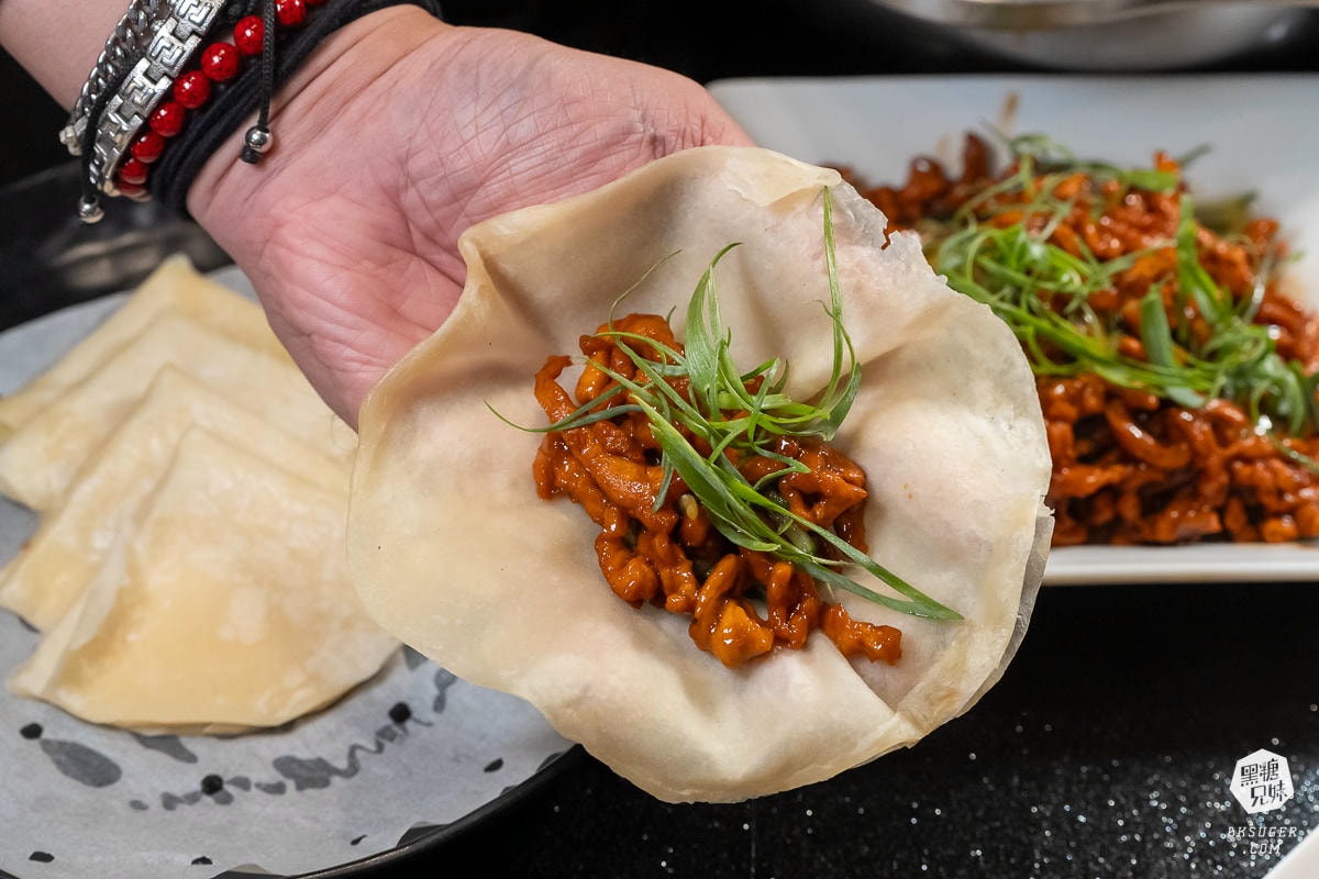 這道菜一上桌就有種滿滿的儀式感。肉絲香氣十足,搭配麵皮包著一起吃,既有大菜的氣勢,又能自己動手DIY,增添用餐樂趣。