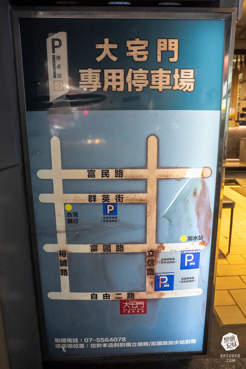 餐廳對面的立信路右側有兩處大宅門特約的停車場可以多利用。