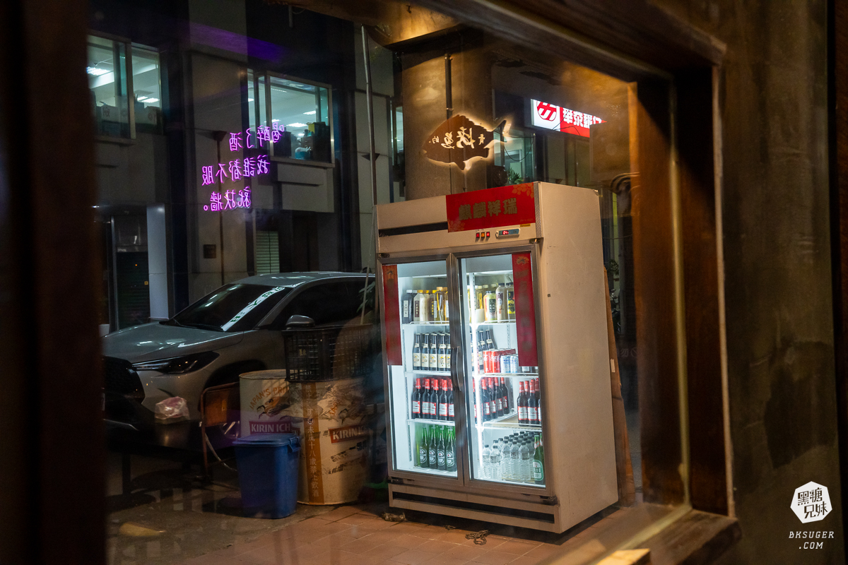賣烤魚的冰箱一直放在店門外,菜單上那靠北有趣的字句
