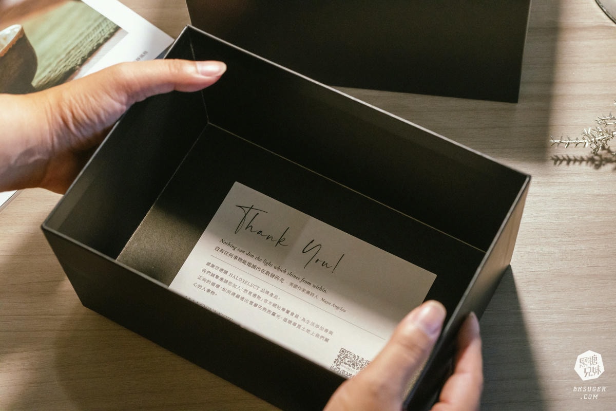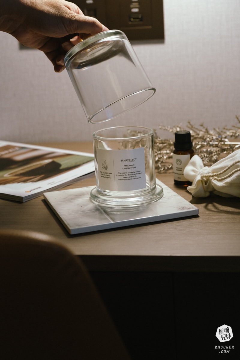 打開Haloselect的包裝,首先映入眼簾的是精緻的黑色禮盒,燙金的品牌logo低調卻不失質感。盒內妥善安置著紫色晶石與15ML的煙韻柚香精油,整體包裝簡約大方,完全符合現代人對「儀式感」生活的追求。