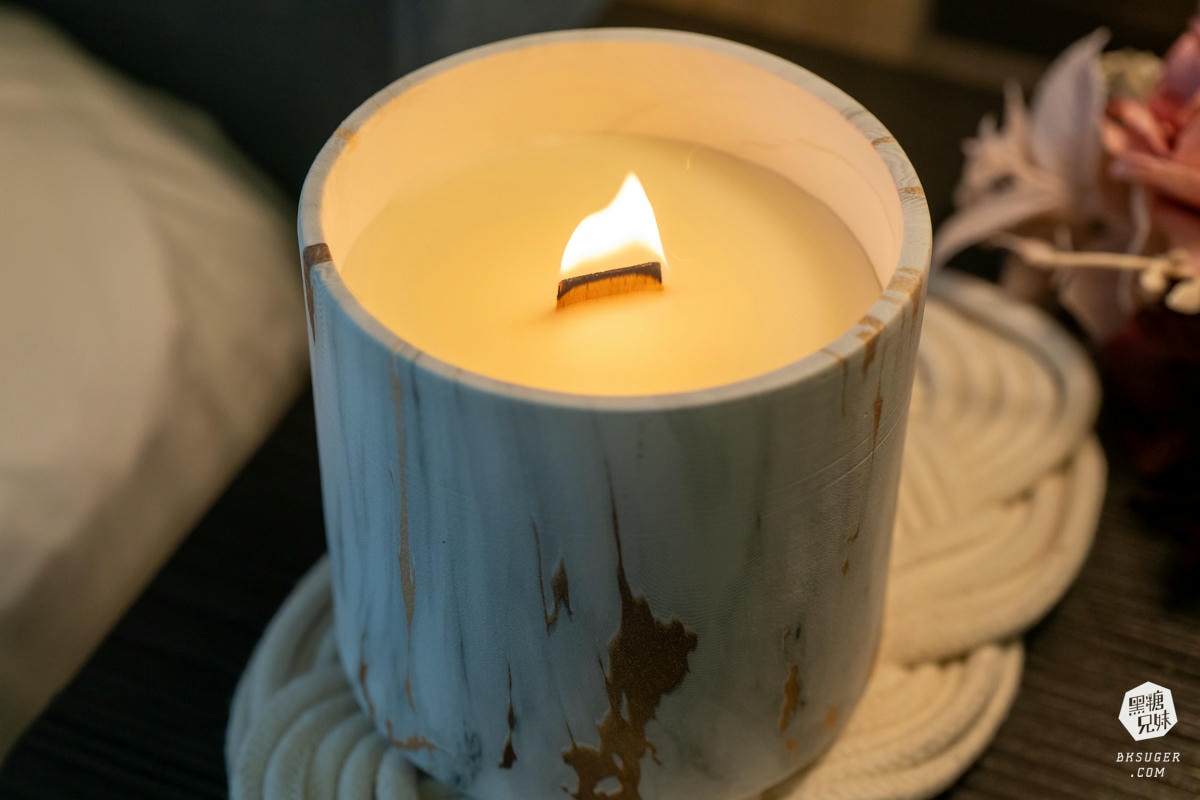 材料使用的是大豆蠟,木片環保燈芯,以及陶瓷容器手工拉坯製成,燃燒可以超過55小時的享受。
