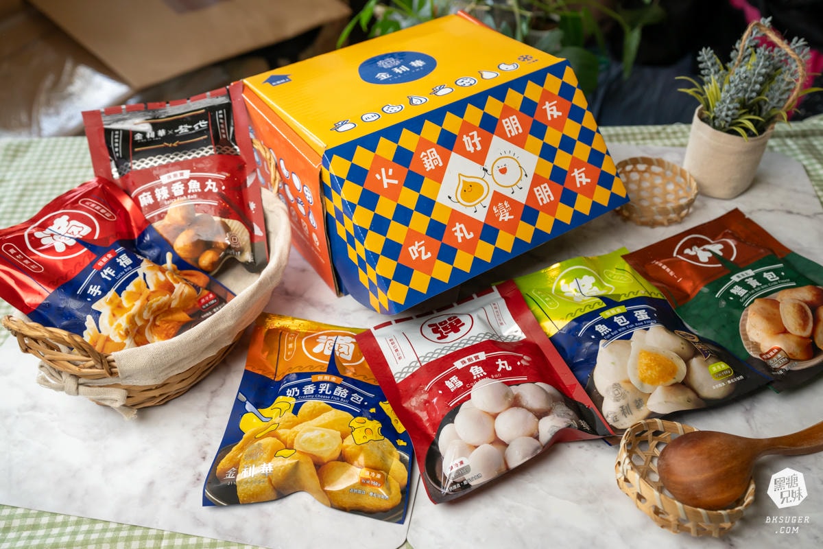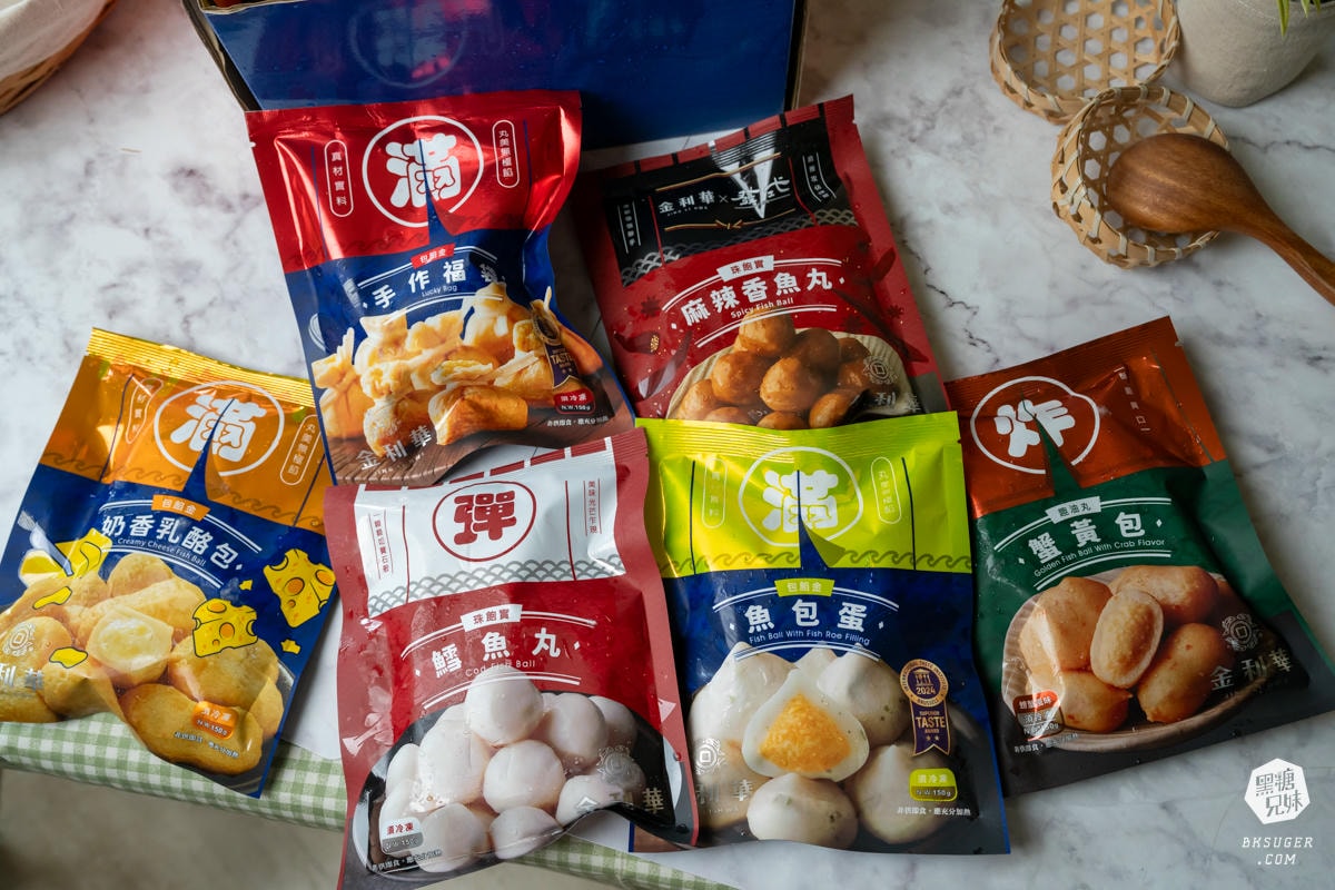 打開小巧的冷凍箱的那一刻,整齊排好的八款金利華火鍋料靜靜躺著,包裝讓人一眼就能辨識種類且標語超級有趣味。手工福袋金黃飽滿、魚包蛋晶瑩可愛、鱈魚丸白嫩彈牙、奶香乳酪包圓潤誘人,光是視覺就先加了 50 分食慾。