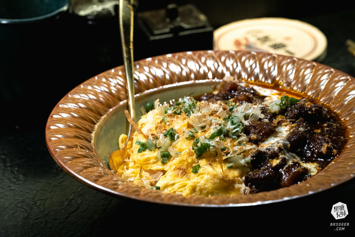 綢緞一般的滑蛋入口綿密絲滑,底下的飯量也很有飽足感,再撒上蔥花以及柴魚片,深夜飽餐一頓最適合。