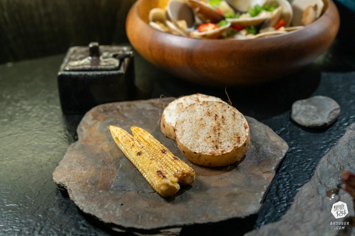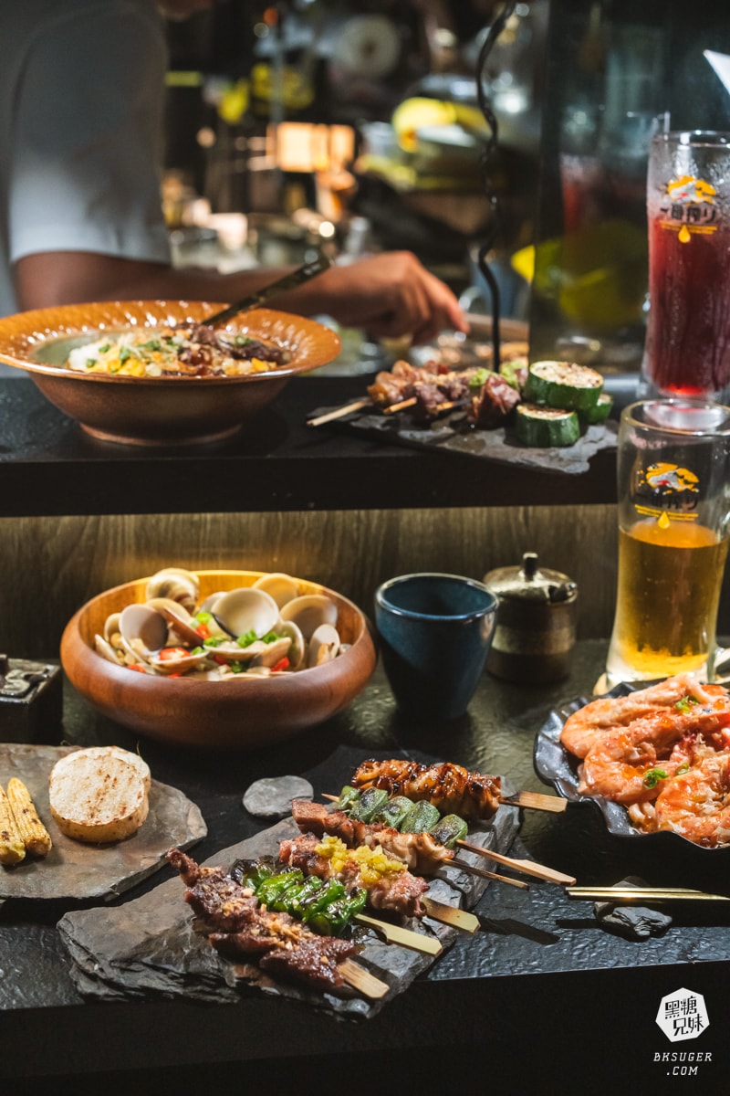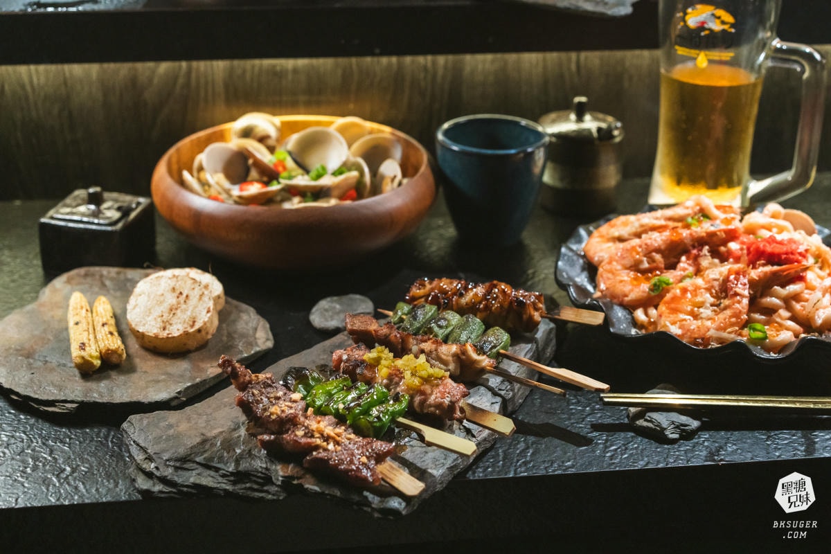 墨岩 居酒屋的墨岩 ,用餐十分應景的使用岩石片先行放置在吧台上,再將剛炙烤好的串燒物放在上面出餐。