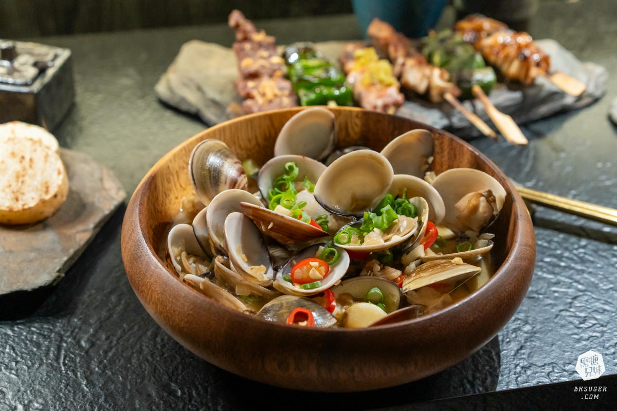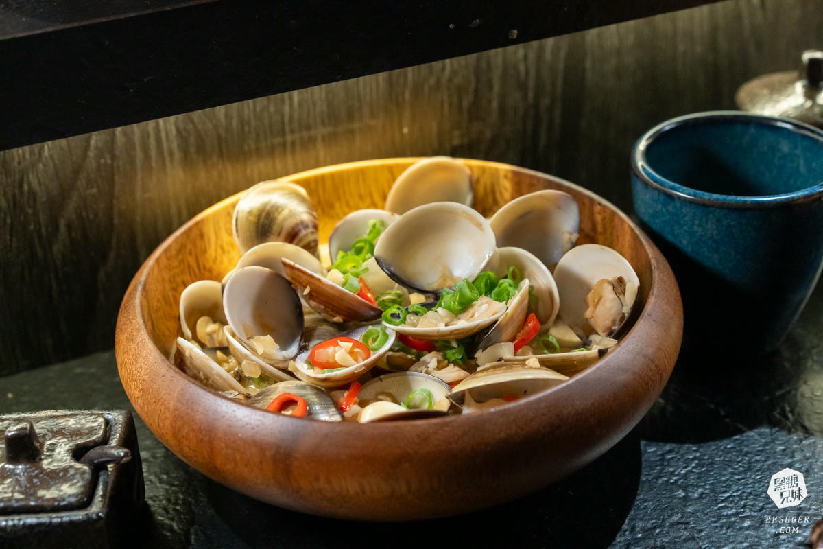 使用燒酒製成,蛤蠣超大顆新鮮又飽滿,裡面加了十足的蒜末蔥花,超級夠味,蛤蠣的湯汁有夠香甜,都想要直接吸光湯汁了~