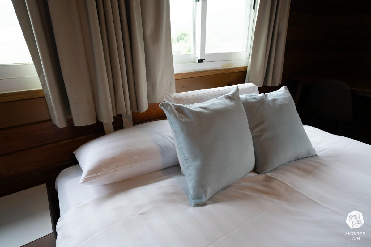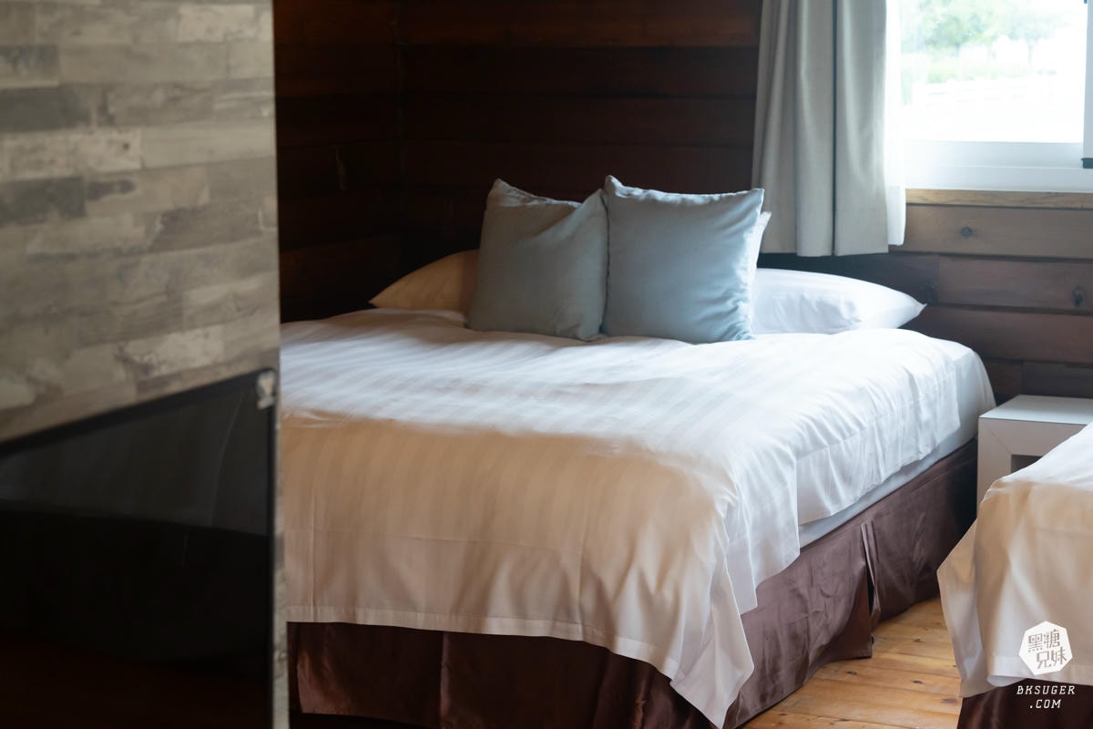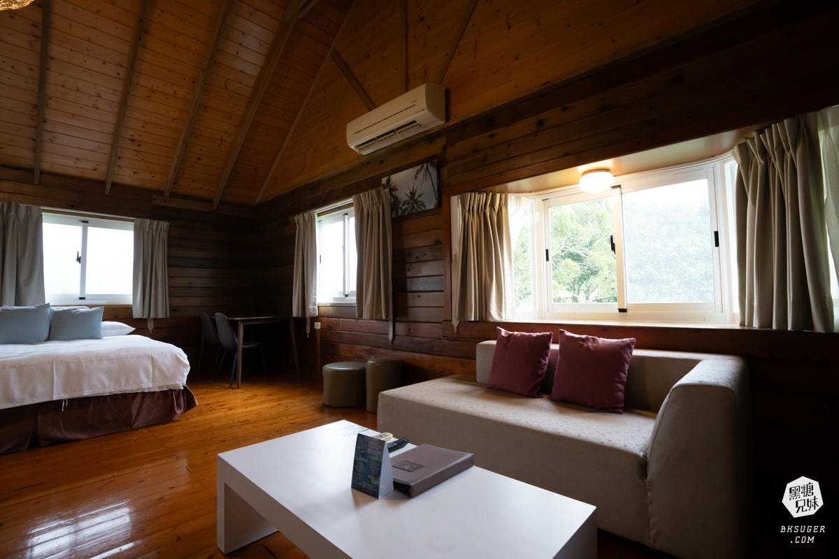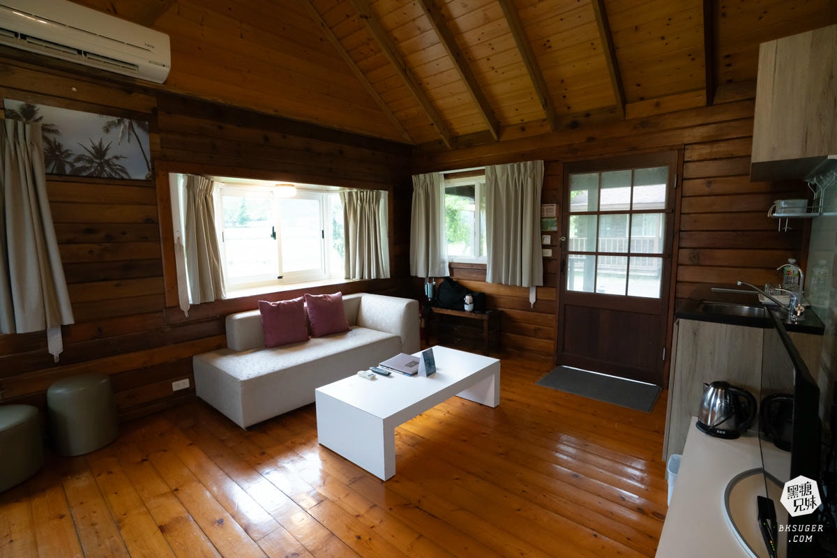 這次入住的是長住房型的房型,跟一般溫馨別墅房型屬於獨棟設計,進房就能聞到淡淡木頭香。因為是轉角房,享有兩面採光,白天自然光灑入,窗外就是河邊景色。