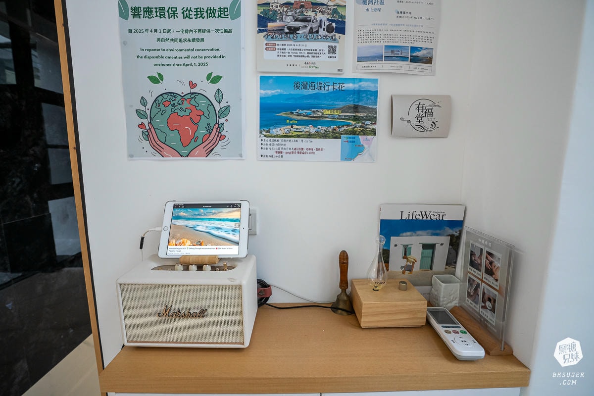 走進民宿大廳,迎接旅人的是乾淨明亮的空間。整體裝潢以簡約白色系搭配木質感為主調,溫暖又有質感。民宿主人以及管家相當親切,雖然入住流程有規範時間(15:00-17:00),若旅人需要自助入住,也都能順利完成,完全不影響旅程,隨時可以聯繫到民宿管家。