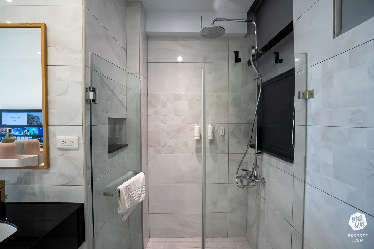 整體以簡約現代設計為主,色調柔和,搭配大量間接照明,讓燈光顯得溫潤不刺眼。無論是夜晚閱讀,或是只想靜靜地躺在床上放鬆,都有一種被柔和氛圍包圍的療癒感。