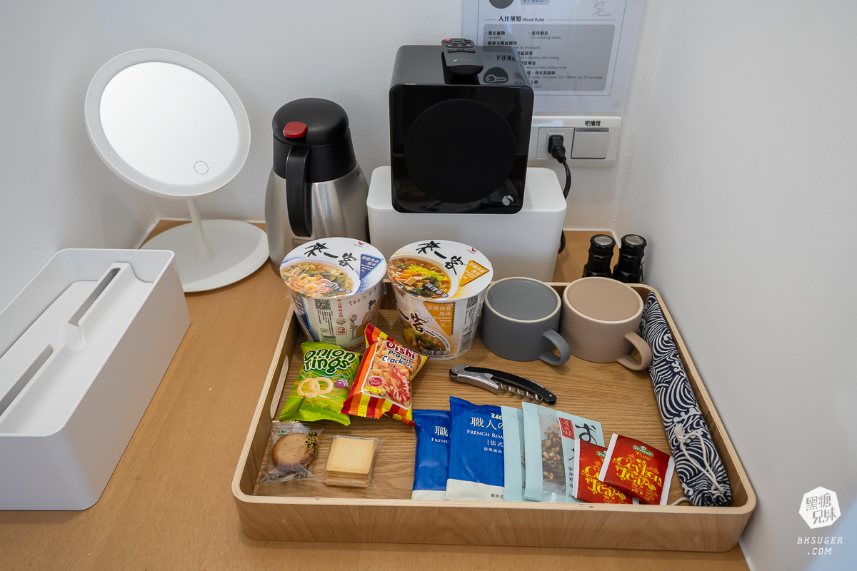 - 迷你吧:吧台上的泡麵、點心,以及冰箱裡的飲品,全部都可以免費享用,對旅人來說是一個大大的加分!