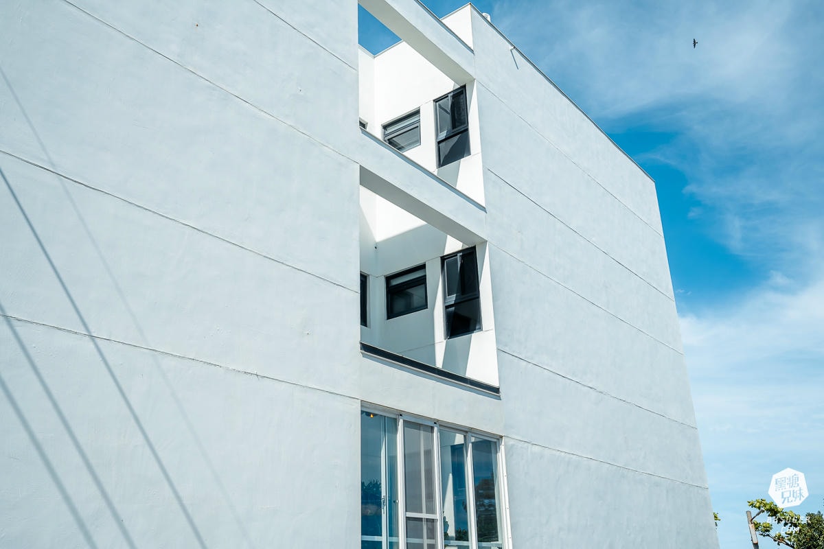 初見「一宅」,外觀是純白簡約的建築,搭配整片透明落地窗,與藍天大海相映成趣,充滿現代感。建築本身線條俐落,卻又帶著一種海邊小鎮的悠閒感。最棒的是,民宿後方有一條小徑,步行不用一分鐘就能直達後灣沙灘!從日出、午後到日落,都可以隨時感受海風的吹拂。