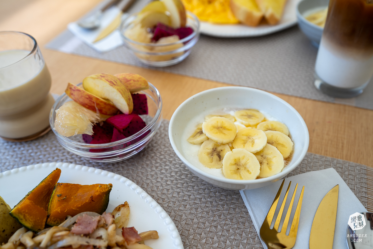 新鮮水果搭配自製優格,以及搭配水果,完全是豐盛早餐。