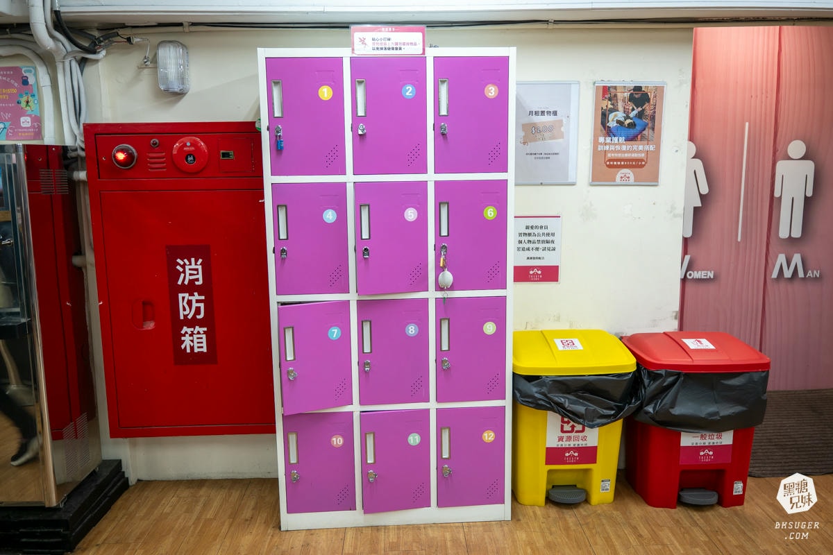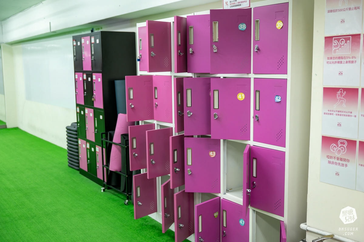 館內都有置物架,會員攜帶一個密碼鎖頭就可以放自己的物品。